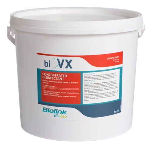 BioVX is a white powder consisting of a stabilised blend of peroxygen compounds, surfactants, organic acids and an inorganic buffer system