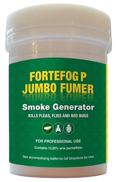 Insecticidal Smoke Generator for control of a wide range of insect pests including fleas, flies, mosquitoes, bedbugs, moths, carpet beetle and cockroaches.
