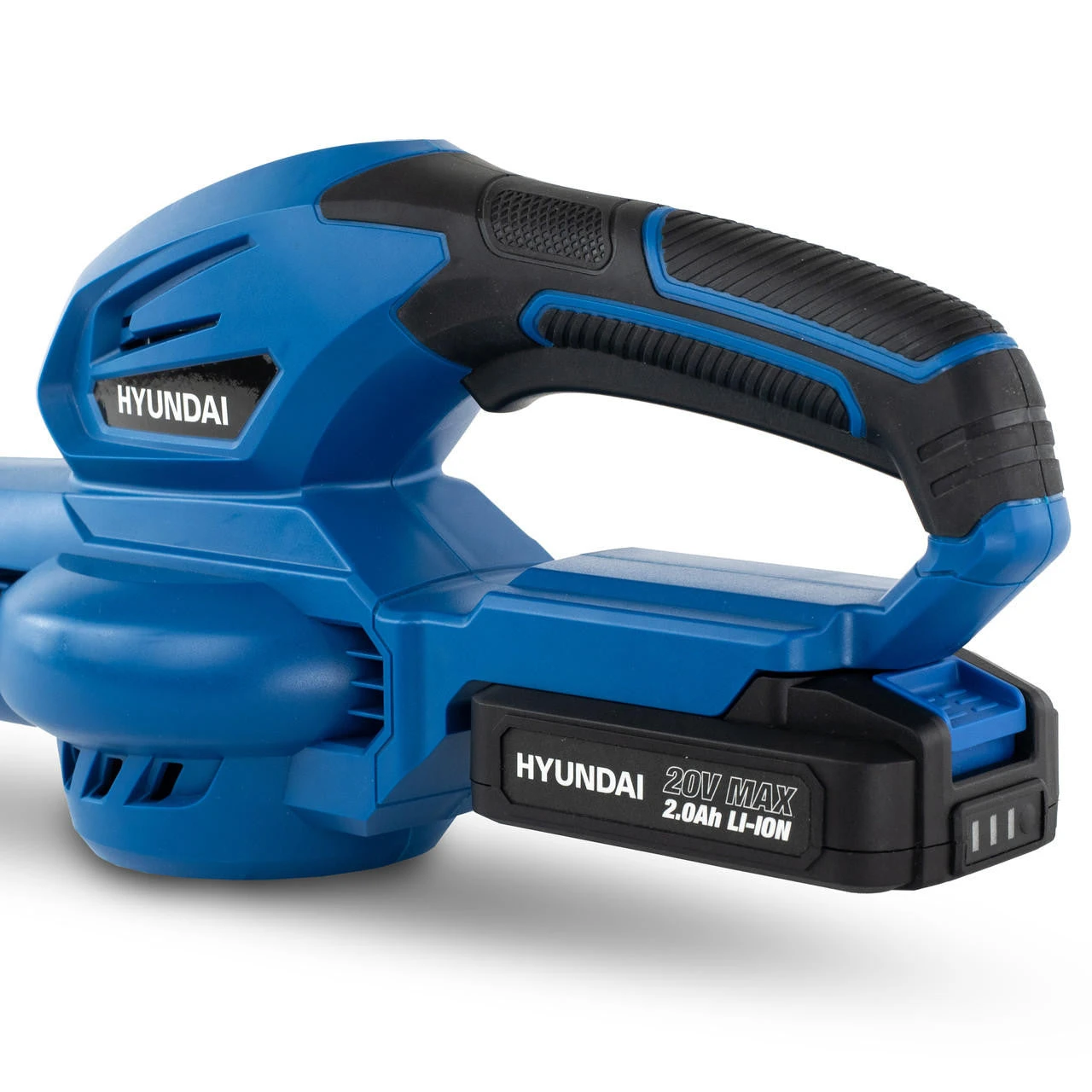 3 Year Warranty The HY2189 Cordless Leaf Blower comes with a 3 year Hyundai warranty* / 1 year commercial warranty* (terms apply) with full UK parts and service backup to maintain your blower for years to come At A Glance: Low maintenance 20v MAX cordless leaf blower Ideal for blowing away leaves, grass cuttings, snow and sawdust or for drying vehicles Lightweight at just 1.54kg Maximum airspeed of 141mph Easy to use Battery charges in just 70 mins Interchangeable battery – the same battery powers our entire 20v range Includes battery and charger 3 year home-use warranty* Key Features: 20V MAX cordless battery-operated leaf blower: Also suitable for clearing snow, grass trimmings, sawdust, gutters and more Weighs just 1.54kg: This lightweight leaf blower can easily be operated one-handed 141mph airspeed: Suitable clearing your outdoor spaces of leaves and debris Includes lithium-ion battery and charger: No cables, no petrol and no pollution Interchangeable battery: Power the whole Hyundai 20v garden machinery and power tool range from the same battery Peace of mind: 3 year Hyundai home-use warranty* / 1 year commercial warranty* (terms apply)