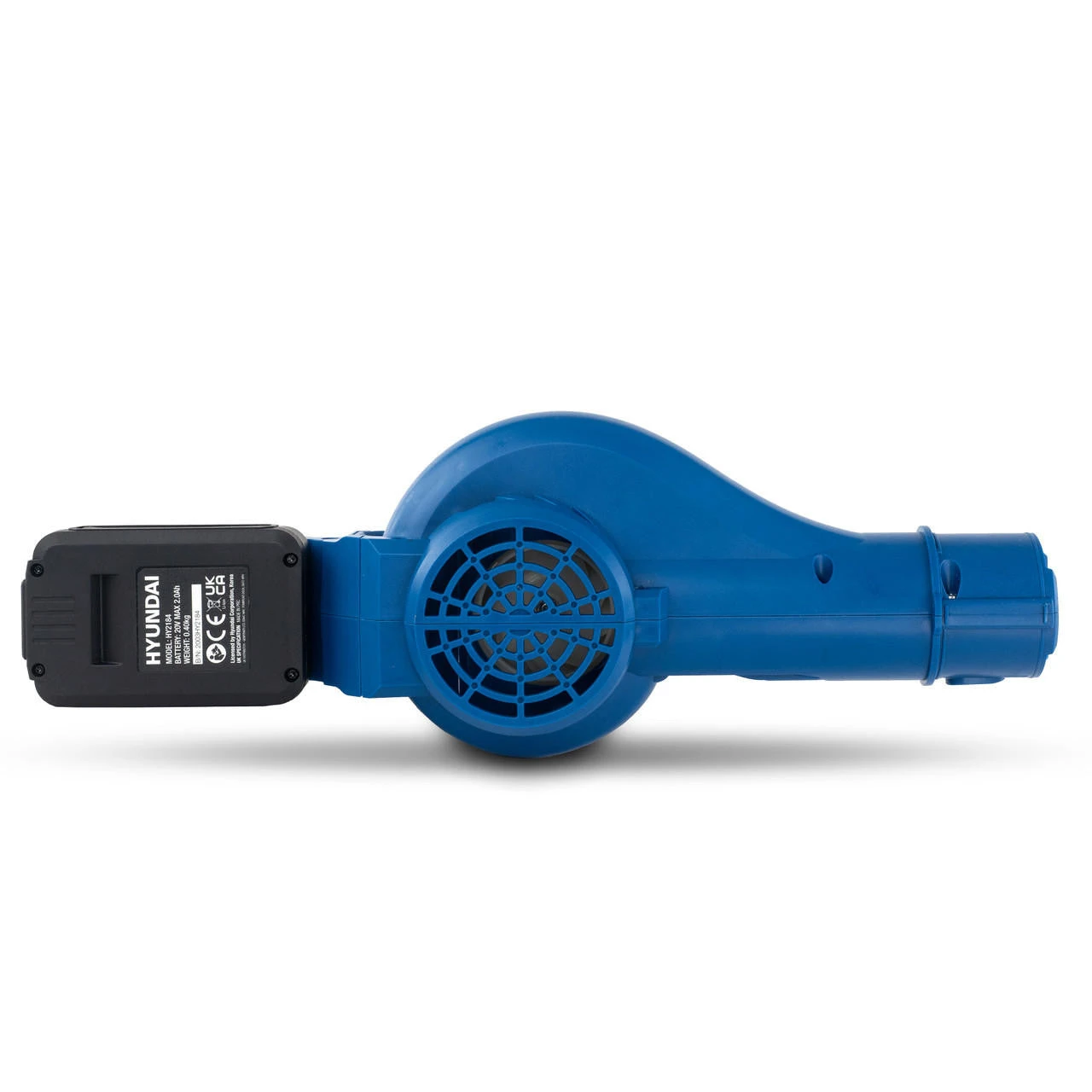 The HY2189 is a lightweight, battery-powered cordless leaf blower from Hyundai, ideal for tidying up your garden, grounds or other outside spaces throughout the year This garden blower has a maximum airspeed of 141mph which is great for quickly and efficiently clearing larger areas such as lawns, decking or patios of any debris such as leaves or grass cuttings