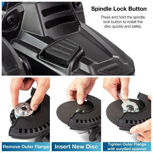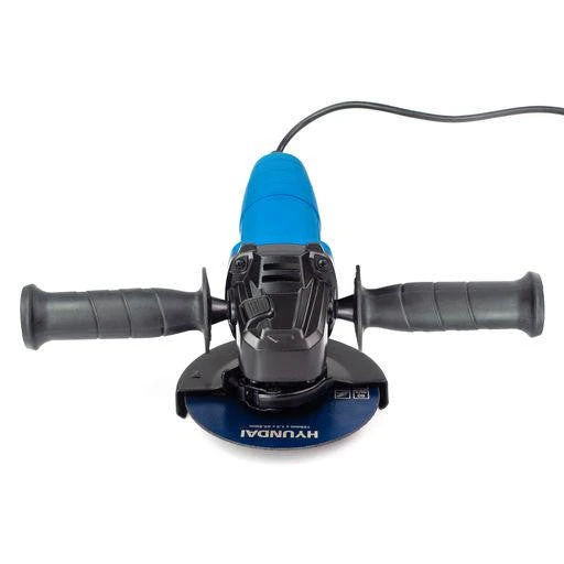 Hyundai 900W Angle Grinder The HYGA900E is a corded electric angle grinder from Hyundai Ideal for restoring old cars, cleaning rust or paint from metal, making precise cuts in tiles (especially useful when tiling around toilets or baths!), polishing metal surfaces to prepare for a new coating or grinding away stone or concrete.With a 12,000 rpm no-load speed and 125mm / 5″ disc diameter, this angle grinder is capable of a huge range of tasks, making it an essential tool for your home, garage, workshop or business Note that 115mm discs can also be used with this angle grinder Easy To Use The generous three meter cable combined with the safe and easy on/off mechanism and tool free guard adjustment make this angle grinder exceptionally easy to use right out of the box This grinder also features a 2-position auxiliary side handle, which makes it easy and comfortable to cut, grind or polish at a variety of different angles This adjustable handle also makes it suitable for both left and right-handed operation With tool-free guard adjustment, you can easily install or remove the guard as well as adjust it to a variety of different angles Lightweight at just 1.8kg, this angle grinder’s compact size makes it easy to use in tight or awkward spaces Electric Angle Grinder Benefits Electric angle grinders provide a constant and powerful delivery of performance, more powerful than battery powered versions capable of faster and more efficient cutting and grinding, saving you time 3 Year Warranty The HYAG900E Hyundai Corded Electric Angle Grinder comes with a 3 year Hyundai warranty* / 1 year commercial warranty* (terms apply) with full UK parts and service backup to maintain your angle grinder for years to come At A Glance: Low maintenance and easy-to-use 125mm / 5″ disc diameter Tool-free guard adjustment for easy set-up 12000rpm no-load speed 2-position auxiliary side handle Accidental start prevention power switch Lightweight at just 1.8kg 3m power cable Includes 7 cutting and grinding discs (including diamond coated) 3 year home-use warranty* / 1 year commercial warranty* Key Features: 900W Electric angle grinder: Suitable for cutting, polishing, grinding, sharpening, and cleaning materials such as steel, copper, concrete, and tile 125mm / 5″ disc diameter: Capable of completing a huge range of tasks quickly and effectively (Can also accept 115mm discs) Tool-free guard adjustment: Quick and easy to set up or remove Lightweight at just 1.8kg: Comfortable to use 2-position auxiliary side handle: Makes it easy to cut/grind at a variety of different angles Safe to use: The power switch has accidental start prevention to keep you safe Long 3 meter power cable: Provides great reach with constant and reliable power Includes 7 different cutting and grinding discs: 1 diamond coated disc, 3 cutting discs and 3 grinding discs are included, giving you everything you need out of the box Peace of mind: 3 year Hyundai home-use warranty* / 1 year commercial warranty* (terms apply)