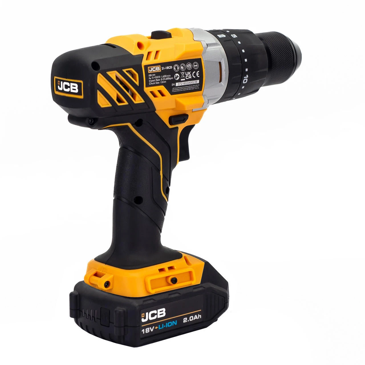JCB 18V Cordless 2-Speed Combi Drill | 21-18CD-B: The versatile combi drill is equipped with a 2-speed transmission, enabling precise drilling and efficient screwdriving. Its ergonomic design ensures comfortable handling, reducing fatigue during extended use.