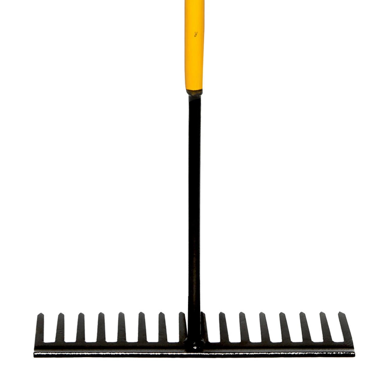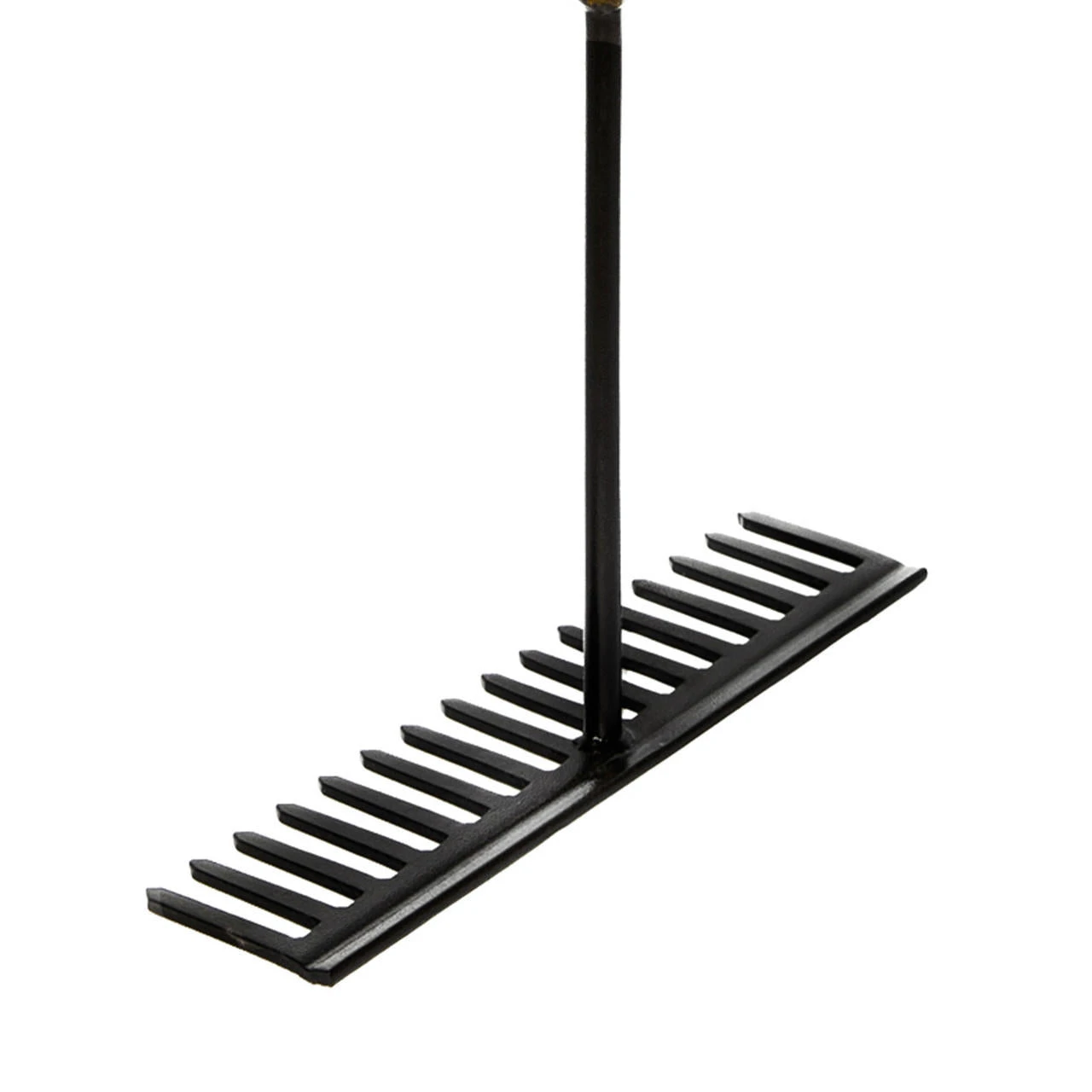 Forged from a single billet of carbon steel before being hardened and tempered, the rake head hosts 16 square teeth with a grading bar.