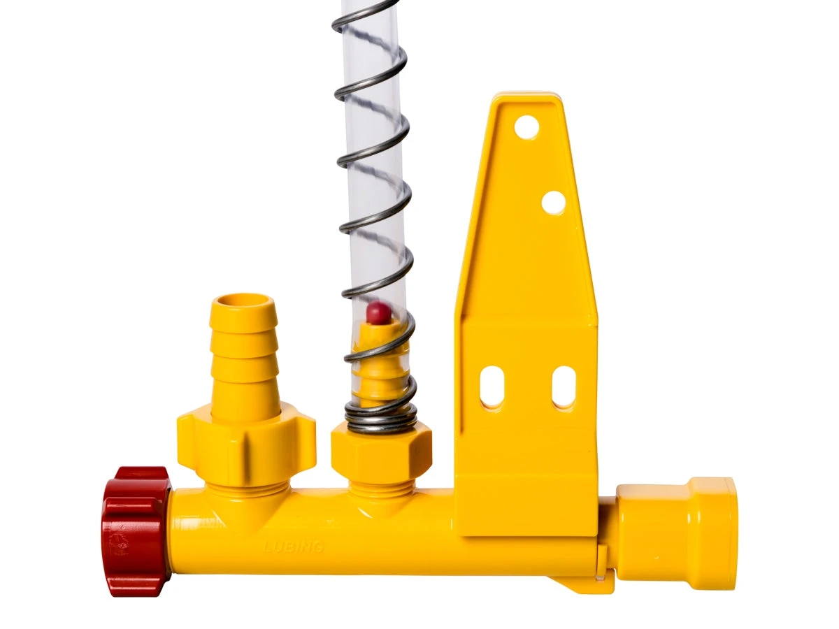 The Lubing Flush Breather attaches to 22mm square drinker tube with a push fitting, and to aluminium profile for added strength. The flexible breather tube can be easily unscrewed for replacement.