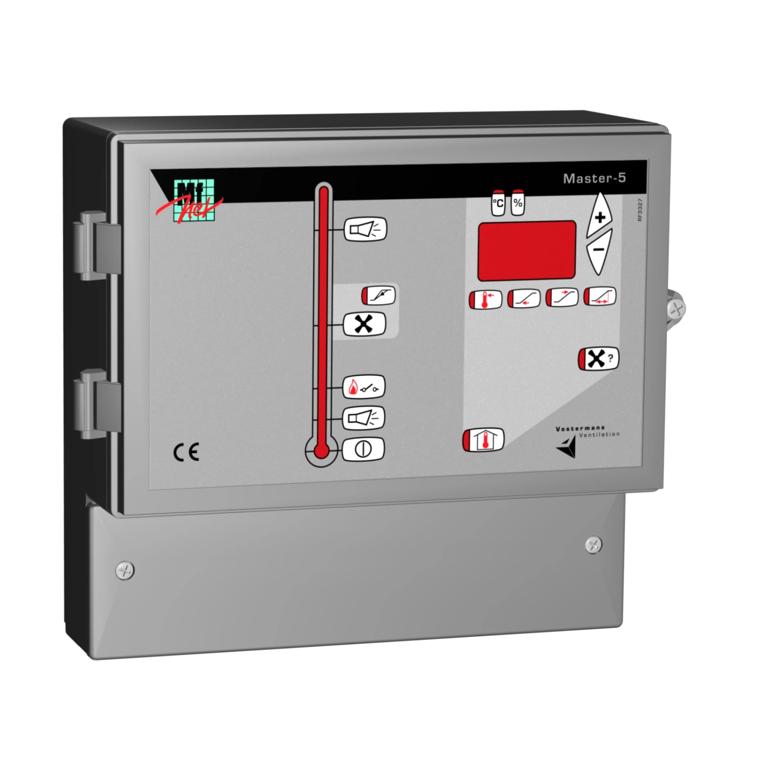 The Master-5 is a main controller, to which simple 0-10V modules (e.g. triac or frequency controller) can be connected. The Master-5 enables through a 0-10V signal, continuous variable climate control, based on temperature. It offers the possibility to control a heater and an alarm. Minimum and maximum ventilation level is adjustable. The Master-5 is equipped with an auto cooling down correction, 2 programmable 0-10V output signals. One of the options is to connect several modules, to control and drive fans, transformers, winch motors and valves.