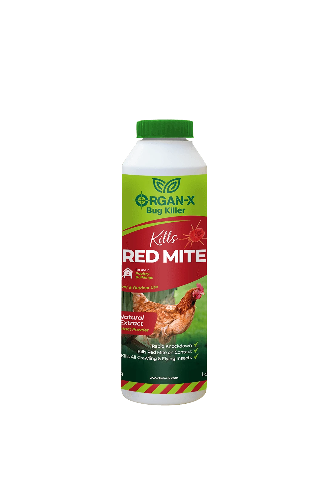 Organ-X Red Mite Killer is ideal for use in poultry buildings, killing red mite on contact.