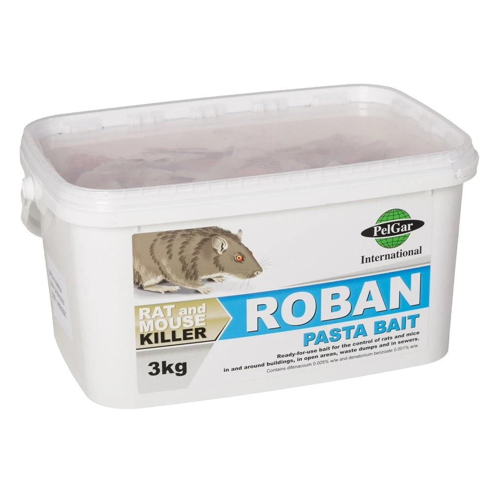 Roban Pasta Bait provides a high quality and extremely palatable poison bait for rats and mice. Supplied as a 3kg tub, with individual, teabag like sachets each with approximately 15g of bait.