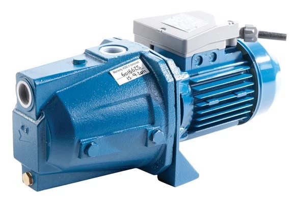Jet type self-priming electric pump. Pump body and motor bracket in cast iron, shaft in stainless steel, impeller, diffuser, nozzle & venture tube in Noryl – mechanical seal.