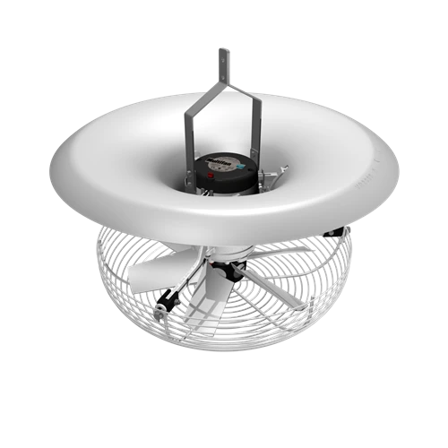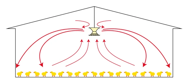 V-Flo Fan – Single Phase – For a uniform development of the animals, it is important to distribute the heat optimally in the poultry house. The V-FloFan from Vostermans Ventilation offers the possibility to reduce the negative impacts of temperature differences in the poultry house at an energy efficient way. Through vertical ventilation the heat is distributed to lower levels in the poultry house, resulting into an optimal microclimate on animal level.